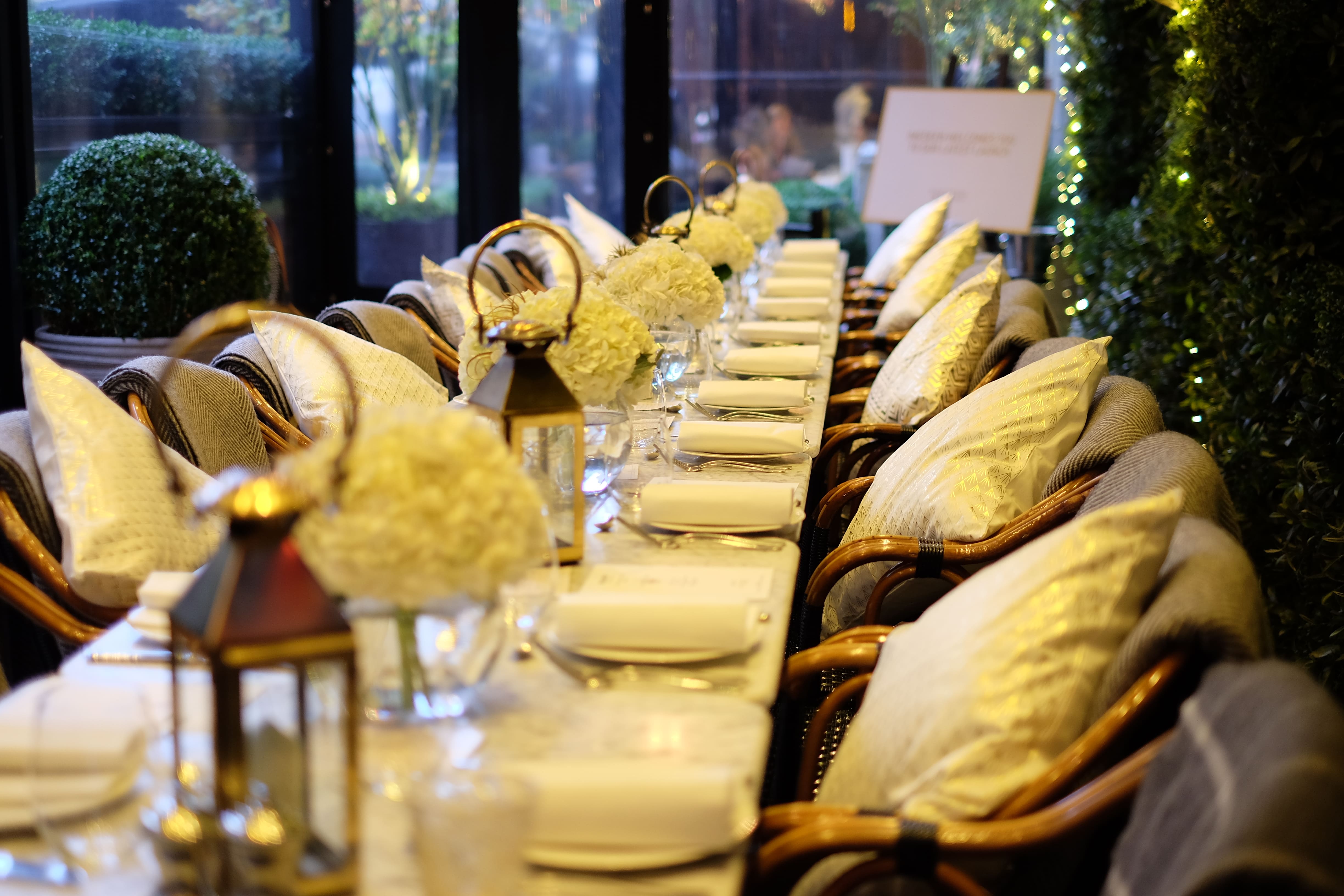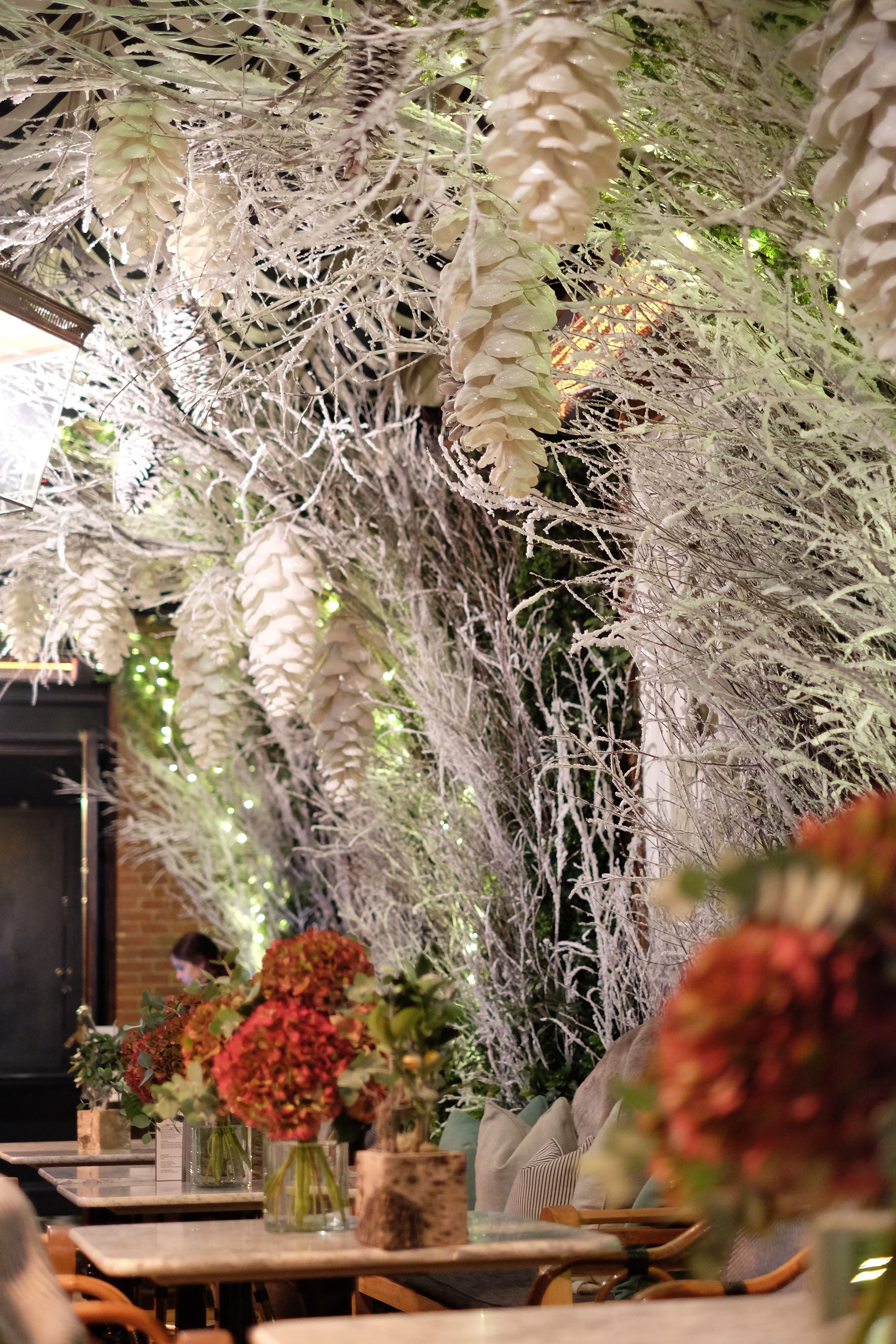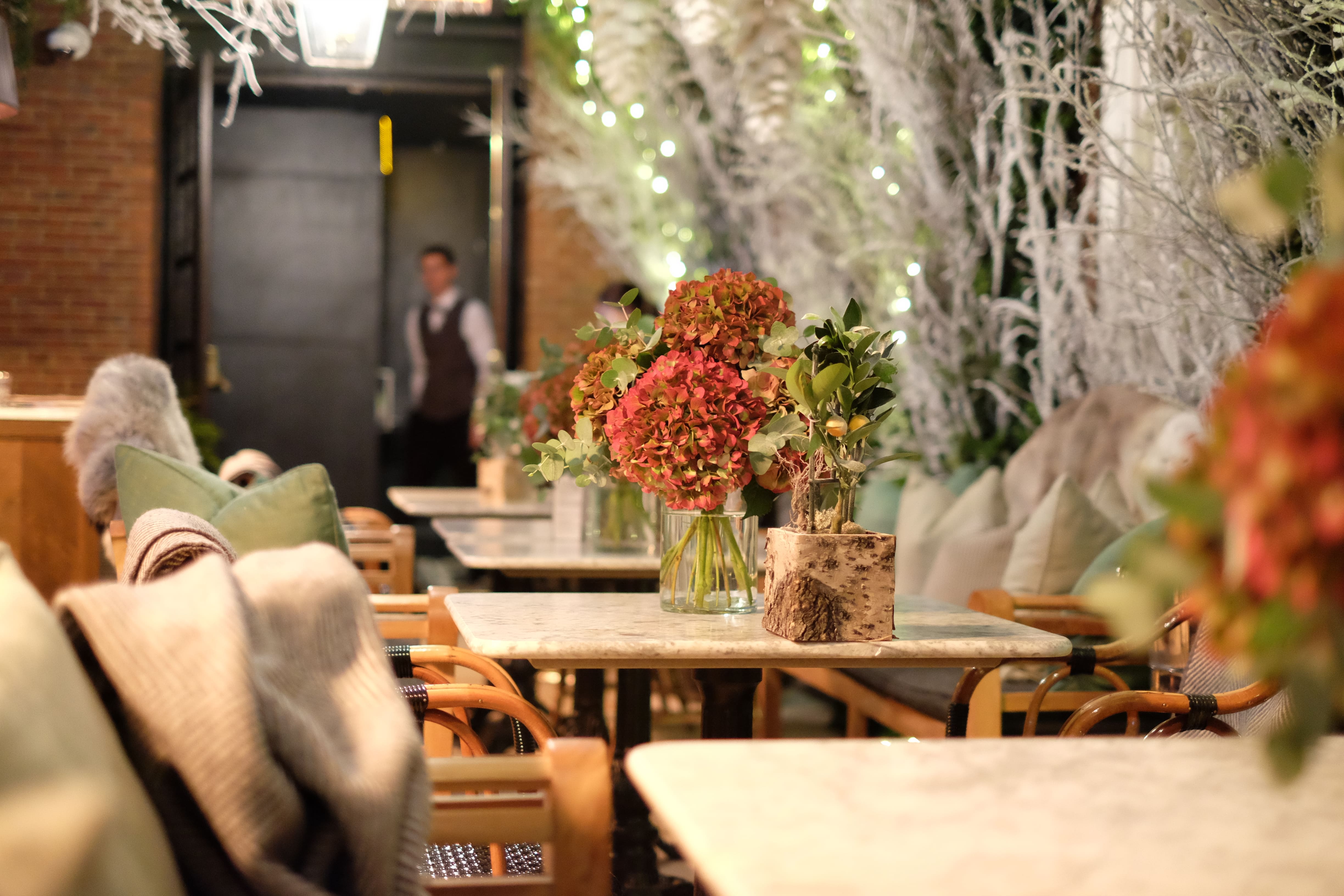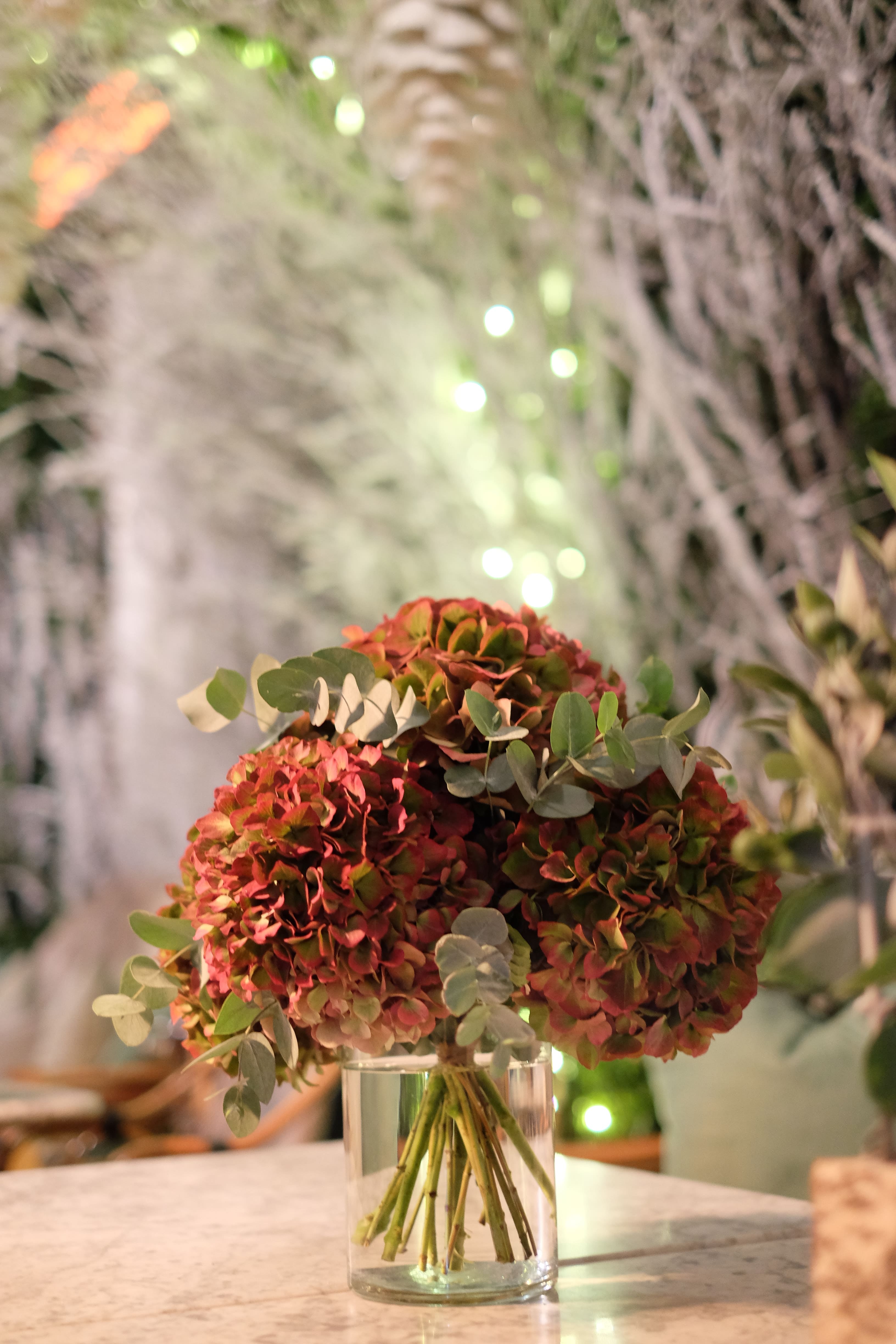 Many of our clients are restaurants, and we also offer weekly and monthly florist services to help create welcoming and beautiful dining spaces. For this restaurant party, we designed simply gorgeous white hydrangea table centrepieces that added an elegant touch to the atmosphere. On another occasion, we embraced an autumn theme with rich, dark orange hydrangeas complemented by touches of eucalyptus, bringing warmth and depth to the setting. We always strive to find the perfect balance between flowers and the space, ensuring a harmonious and inviting experience for all guests.