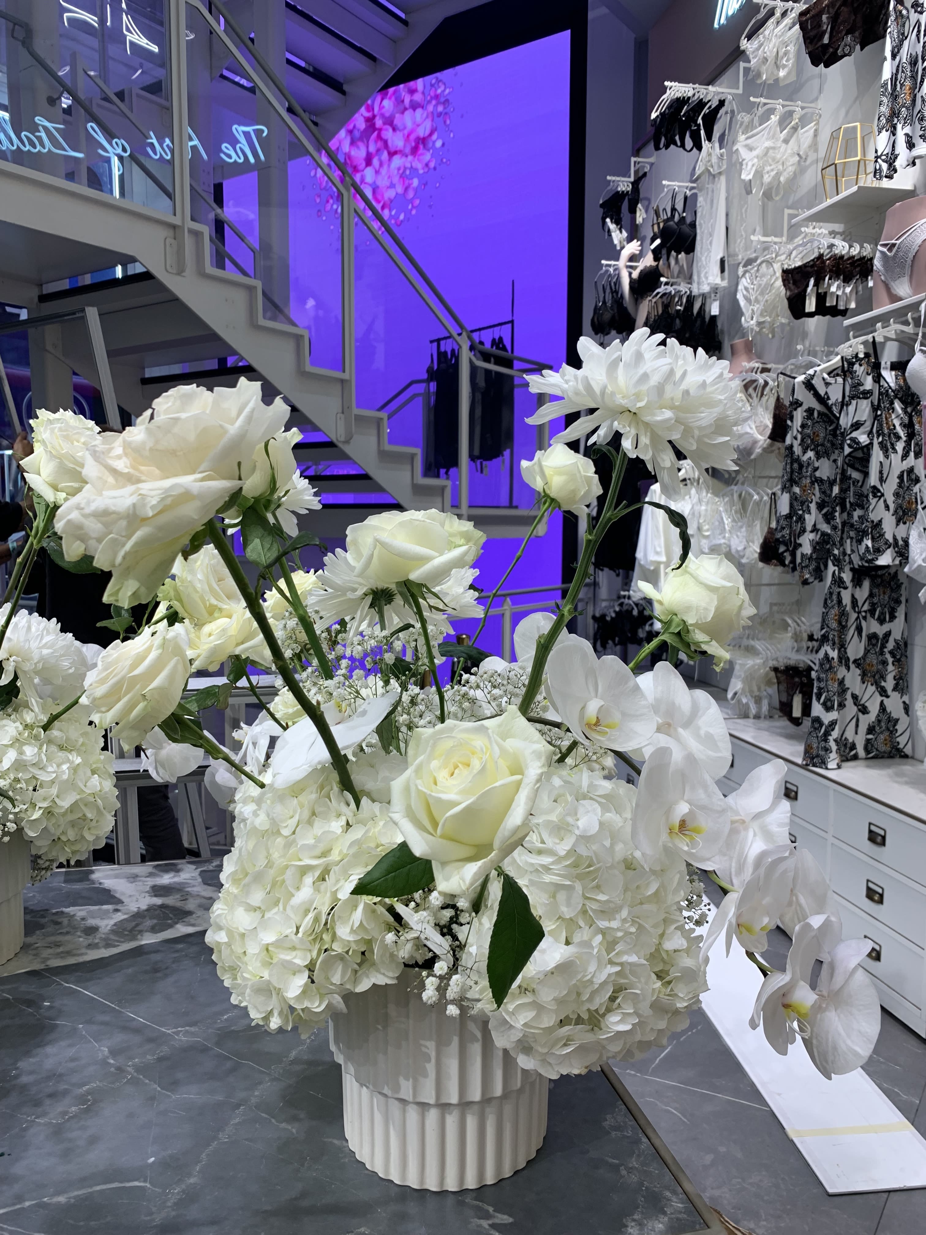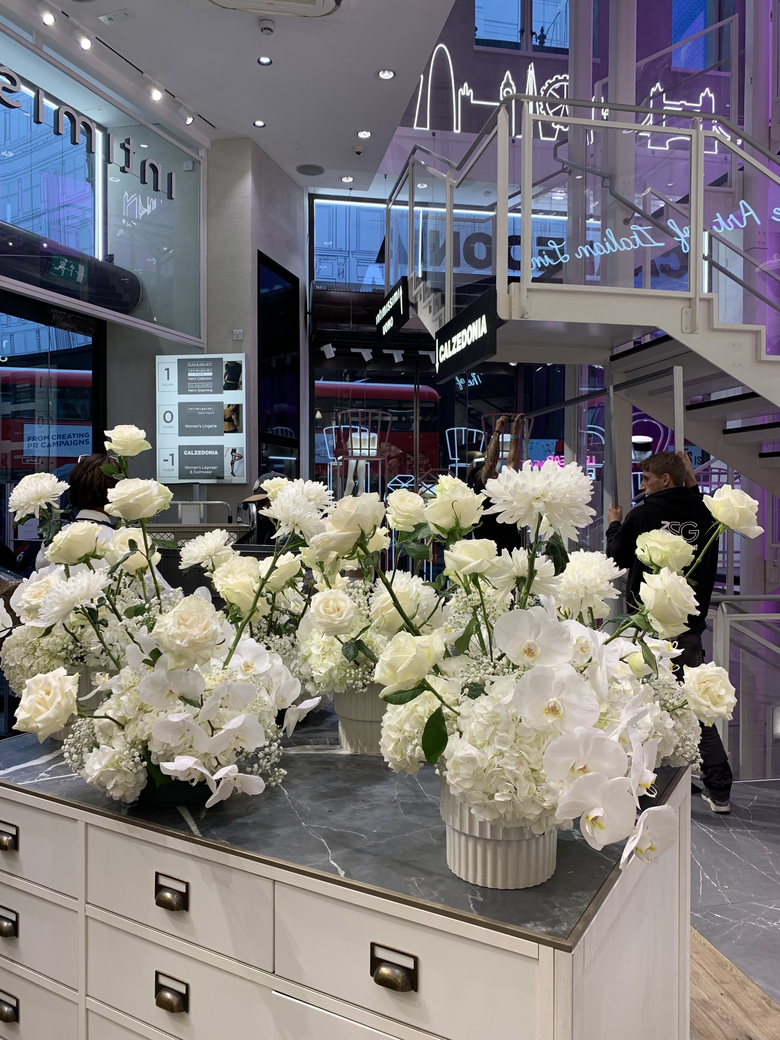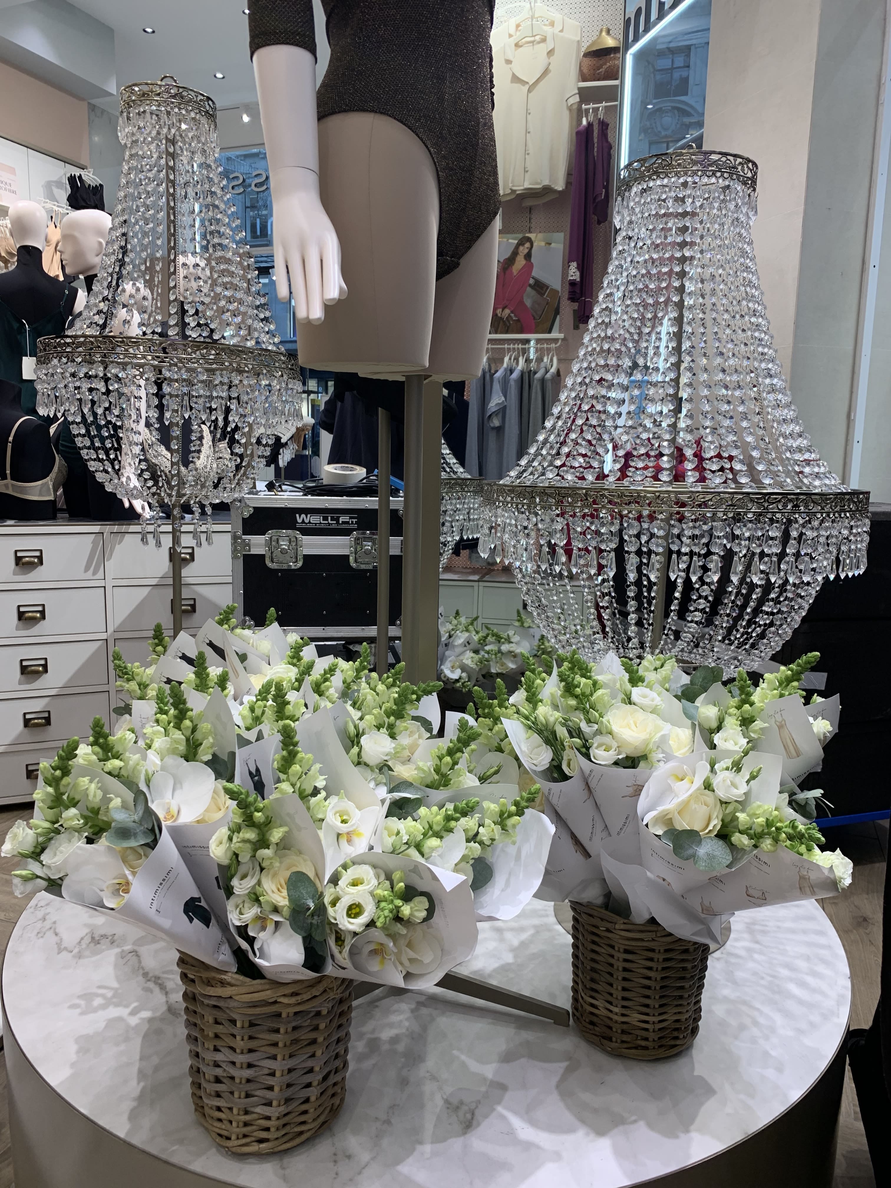 We frequently undertake projects involving floral design for product launches, brand shop events, and openings. This time, we had the pleasure of collaborating with our esteemed client to create stunning white flower arrangements and mini-bouquets as gifts for event guests. We always welcome the opportunity to work with London-based brands on shop events like these, bringing a touch of elegance and beauty to each occasion.