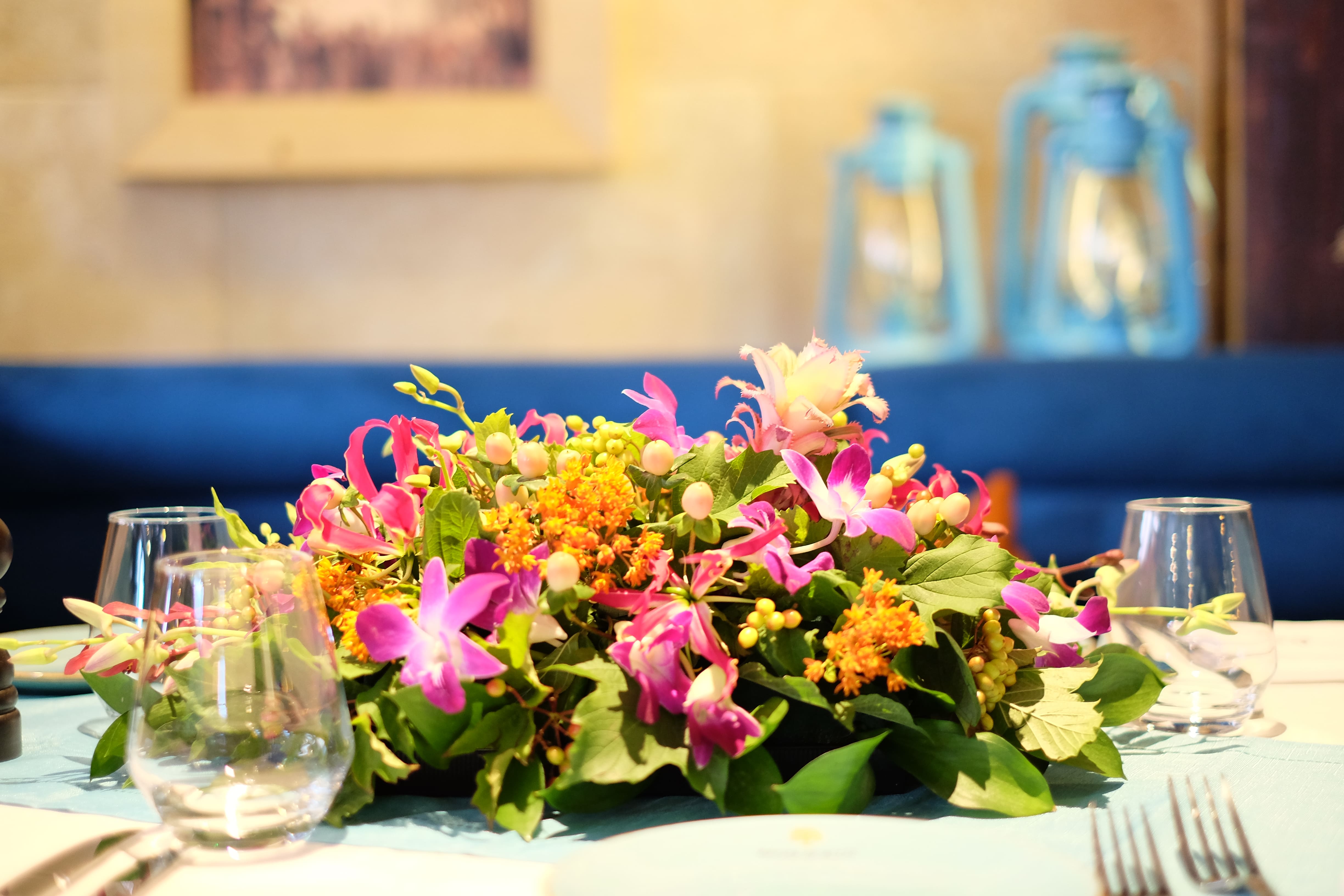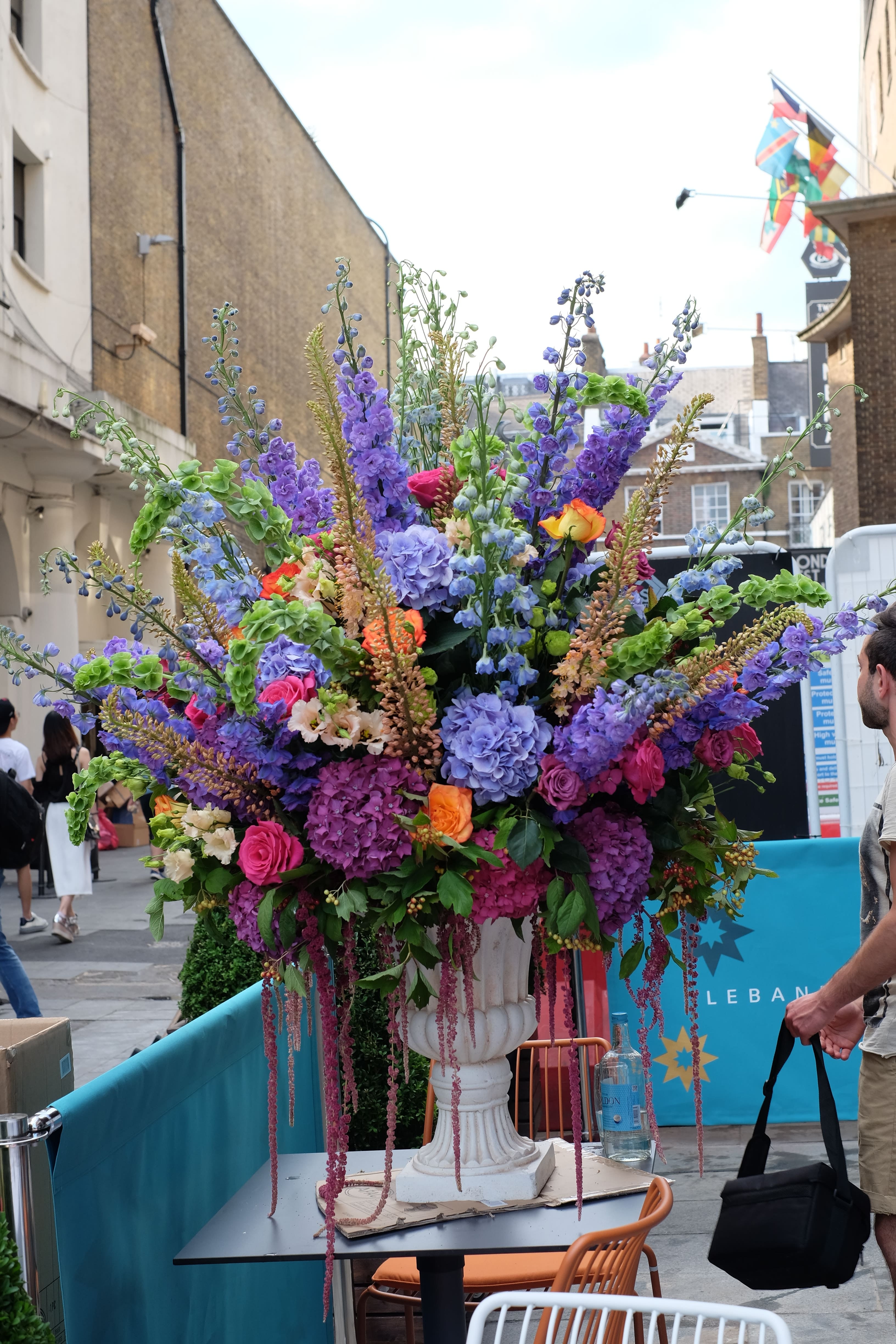 We are always thrilled for grand restaurant openings in London! This time, we had the honour of collaborating with Maison du Mezze for their spectacular grand opening. When we say grand, we truly mean it! We created vibrant and luxurious flower arrangements, complete with tropical fresh table centrepieces that brought life to the space. The venue was elevated with an abundance of greenery, including lush plants, palms, and ivy. Flower garlands adorned the stairs, adding an enchanting touch. It was a celebration filled with beauty and flowers, perfectly setting the stage for an unforgettable dining experience!