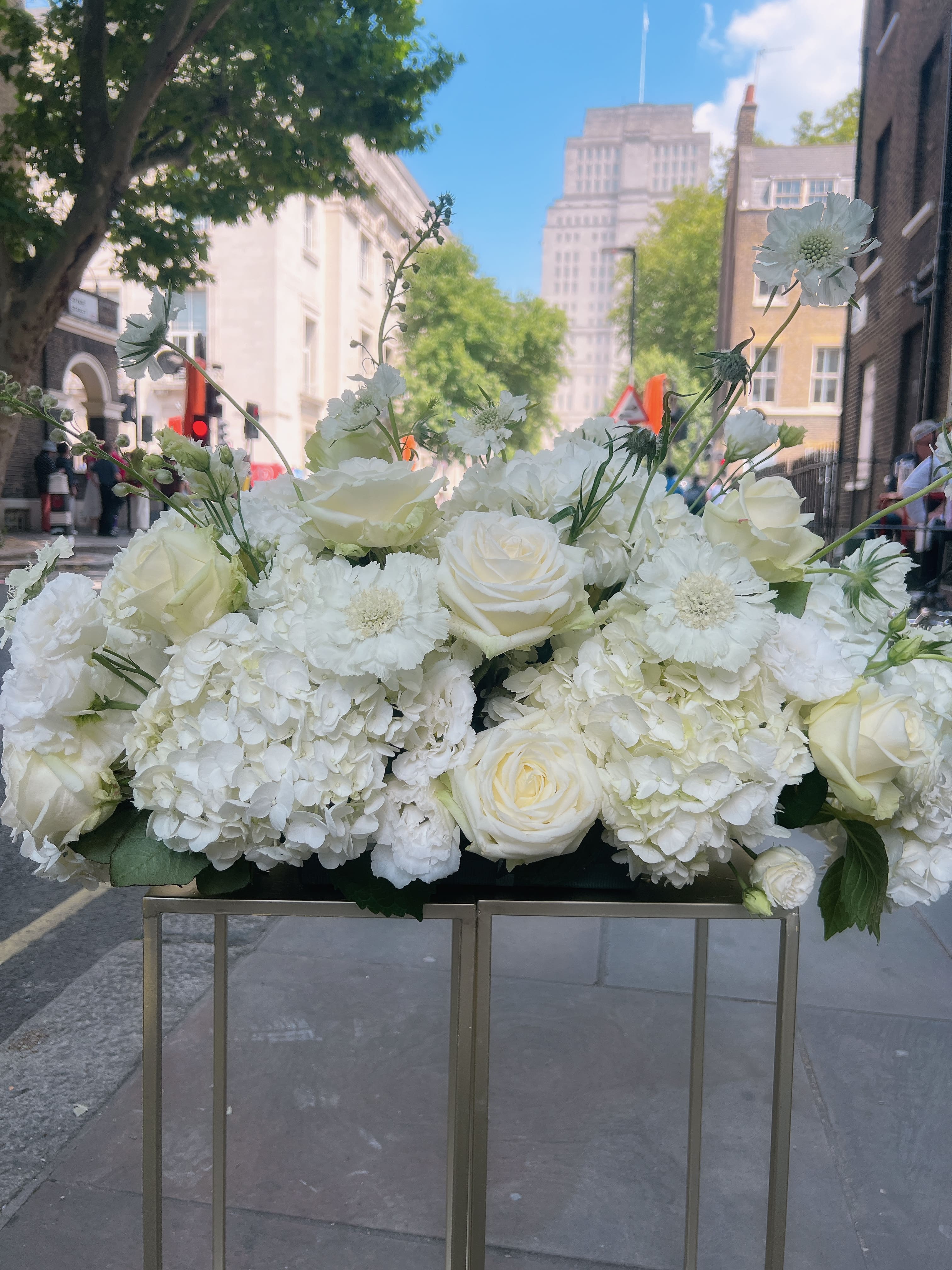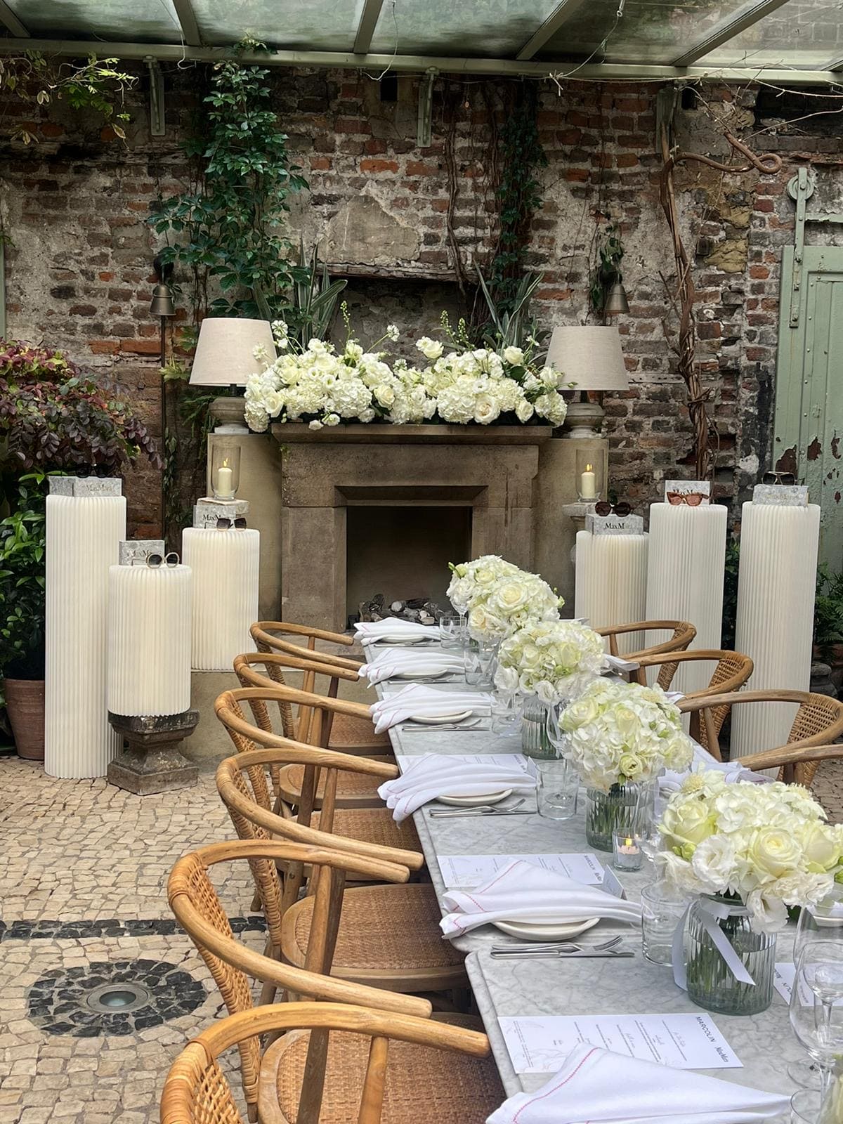 For the Marcolin and Max Mara product event, we created exquisite table floral designs and a striking fireplace arrangement featuring all-white seasonal flowers, roses, and hydrangeas. The atmosphere in Luca Restaurant transported us to a cosy, dreamy corner of Italy, making the setting perfect. Our floral designs added an elegant touch to the event, enhancing the overall experience. We specialise in creating stunning floral arrangements for various brand product launches in London, including restaurant dinners and special events, ensuring each occasion is both memorable and beautiful.