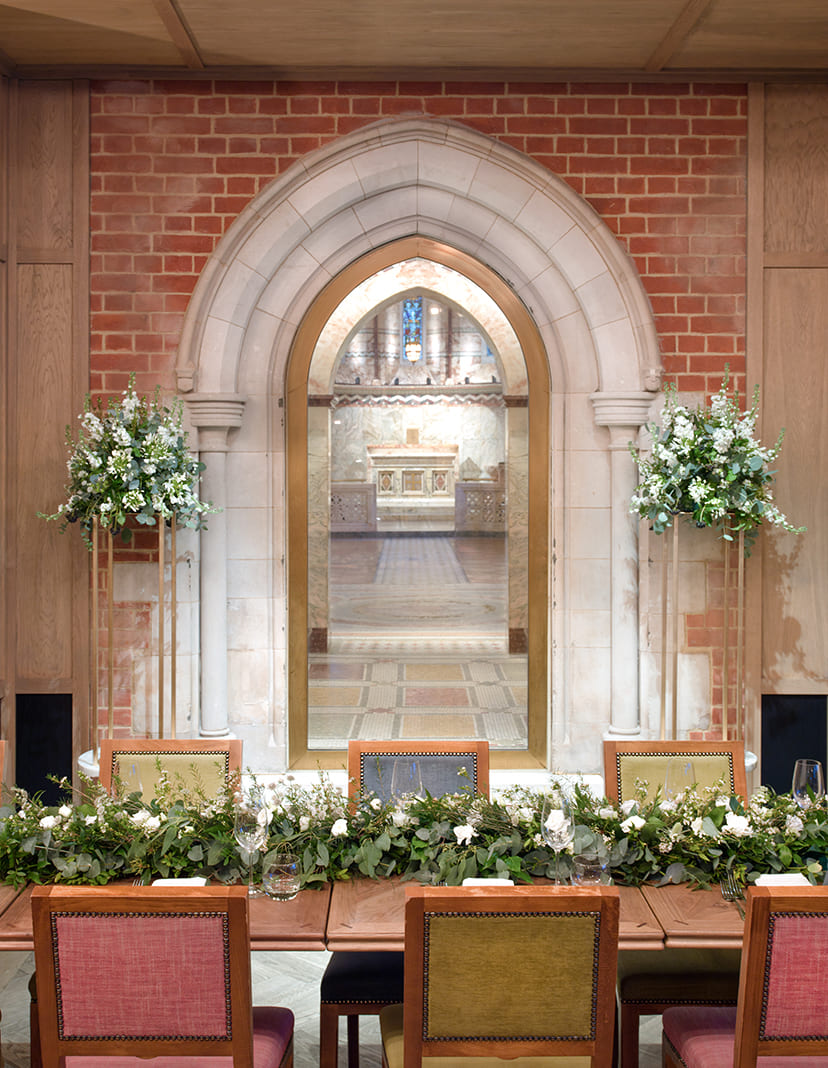 If you're seeking a special venue in central London, Percy & Founders is a truly gorgeous choice. For this wedding, we created marvellous floral arrangements - an abundance of lush greenery, with eucalyptus as the star, complemented by the finest white flowers. It was a dream come true for those desiring an intimate, modern wedding while also embracing a touch of history and tradition. The setting was perfect, blending contemporary elegance with timeless charm, making the celebration unforgettable.