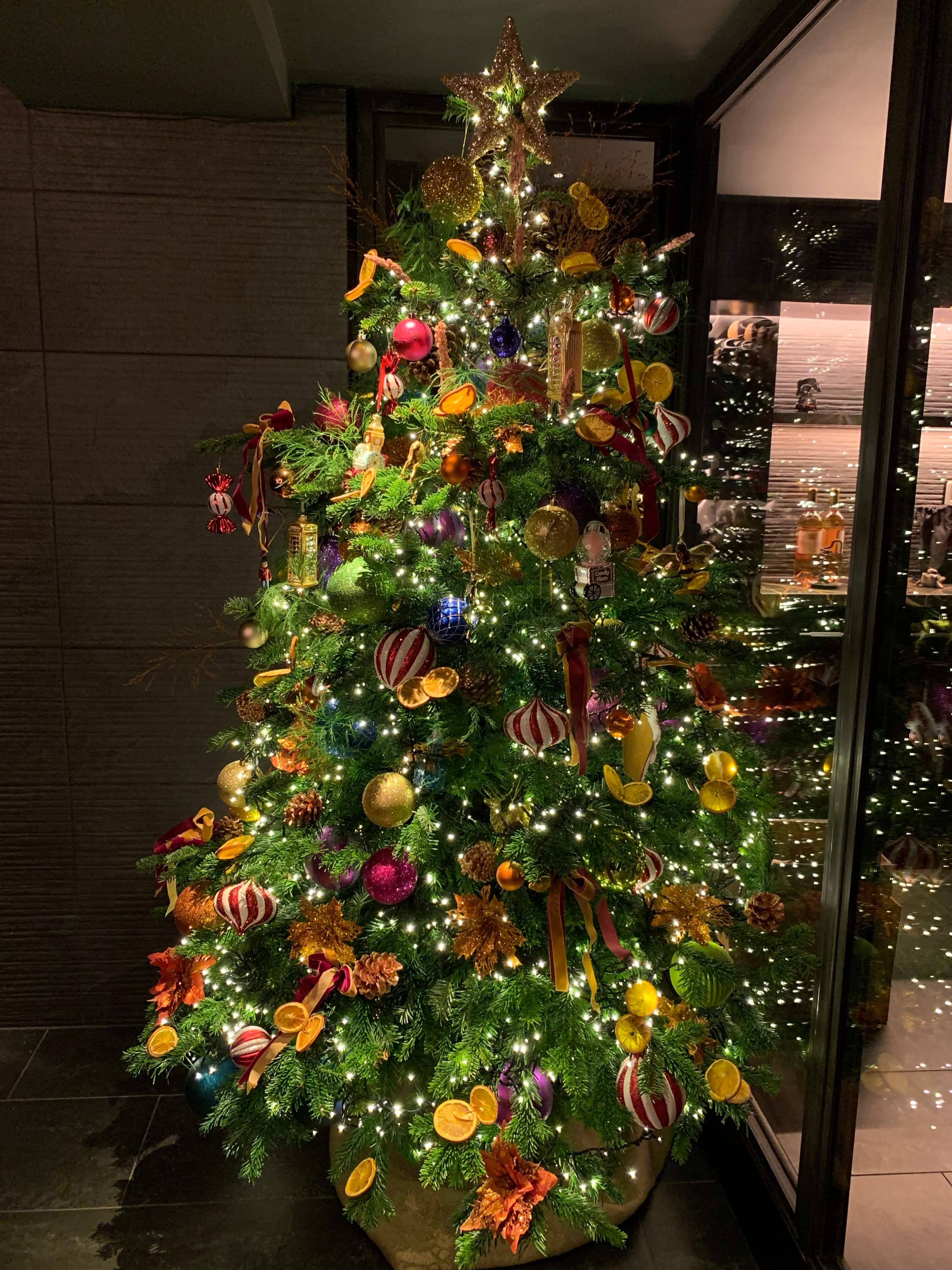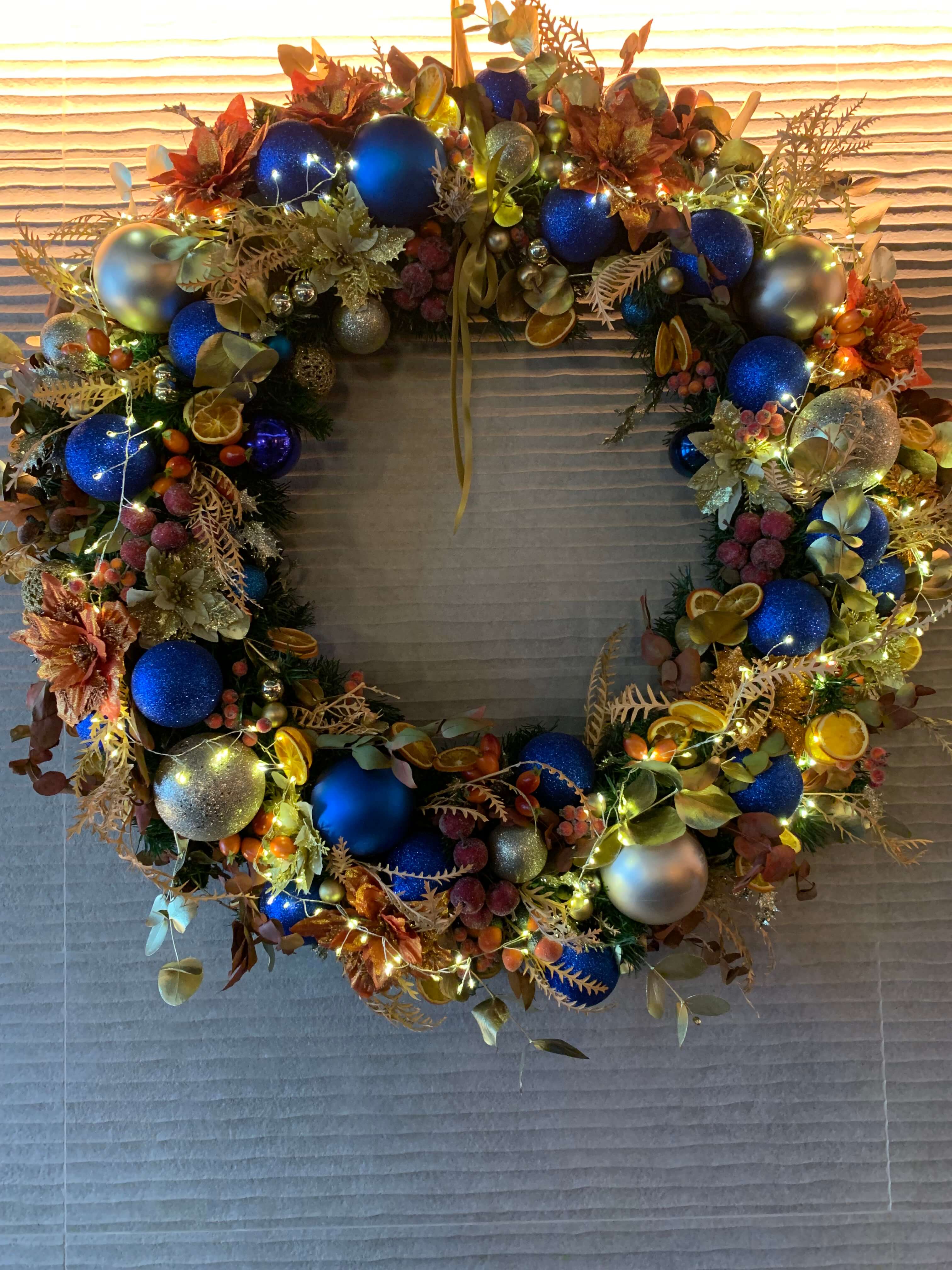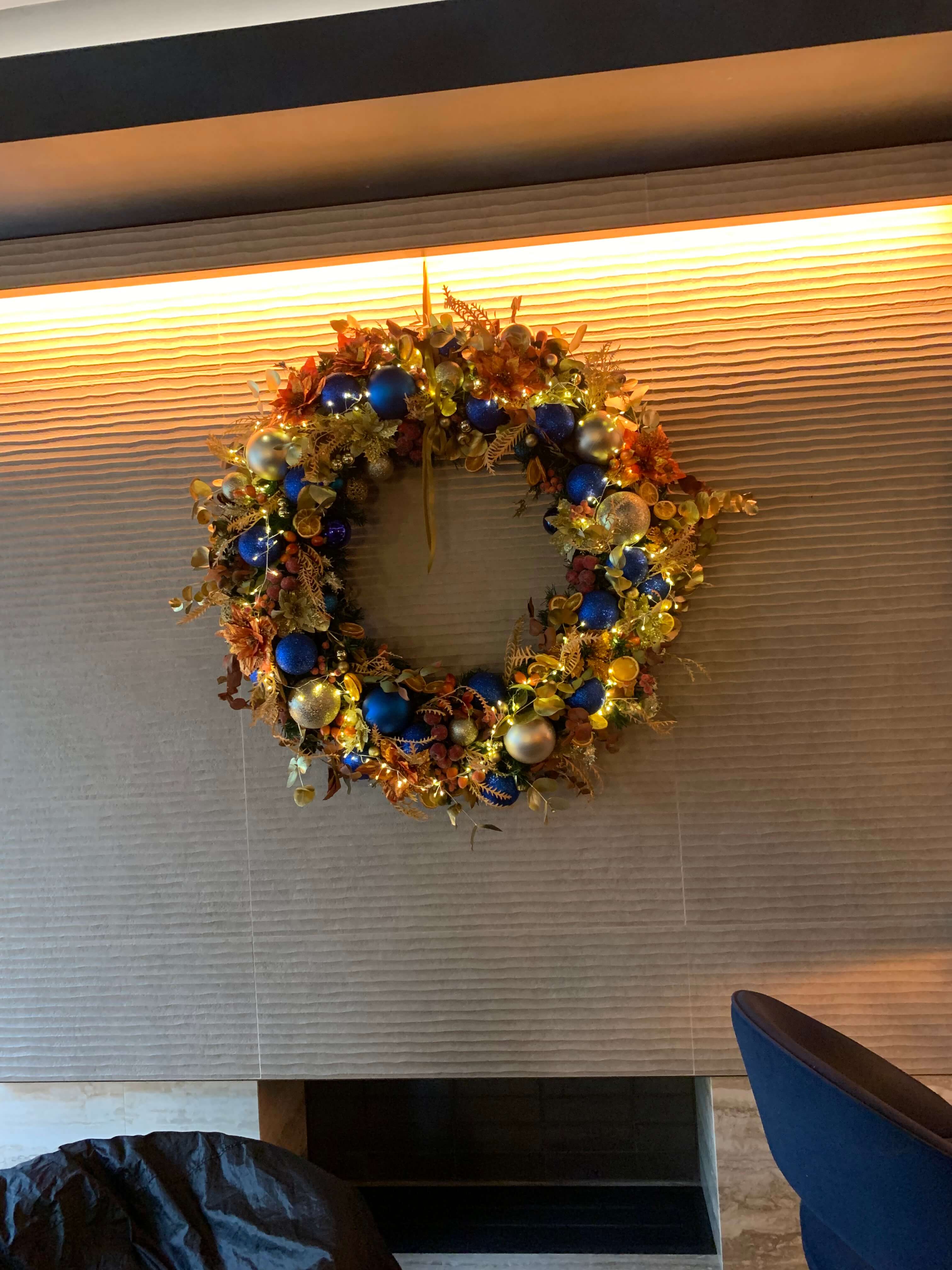 We are honoured to have worked with numerous London restaurants during the festive season, transforming their spaces into enchanting Christmas atmospheres. Our offerings include a variety of decorations, from Christmas trees, wreaths, and arrangements to garlands and intricate details. For this Michelin-starred restaurant, we crafted a stunning mixed-colour décor, featuring beautiful gold and blue wreaths that perfectly complemented the festive ambiance.