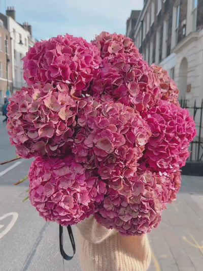 Rich and romantic, this bouquet of autumn pink hydrangeas captures the warmth of the season in every petal. With its deep blush tones and velvety texture, it brings a sense of cosy elegance — perfect for adding a touch of autumn charm to your home or gifting to someone who loves the softer side of the season.