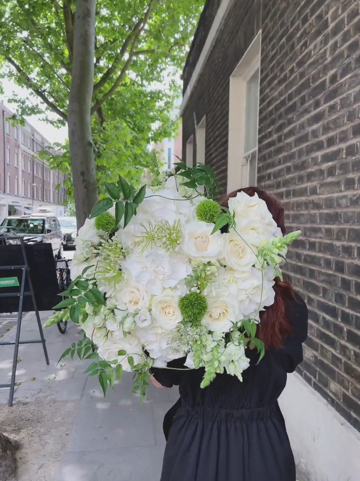 This exquisite bouquet captures the essence of a summer meadow with its stunning white florals and delicate touches of green. Each arrangement evokes the serene beauty of nature, bringing a fresh, summery feel for any occasion.
